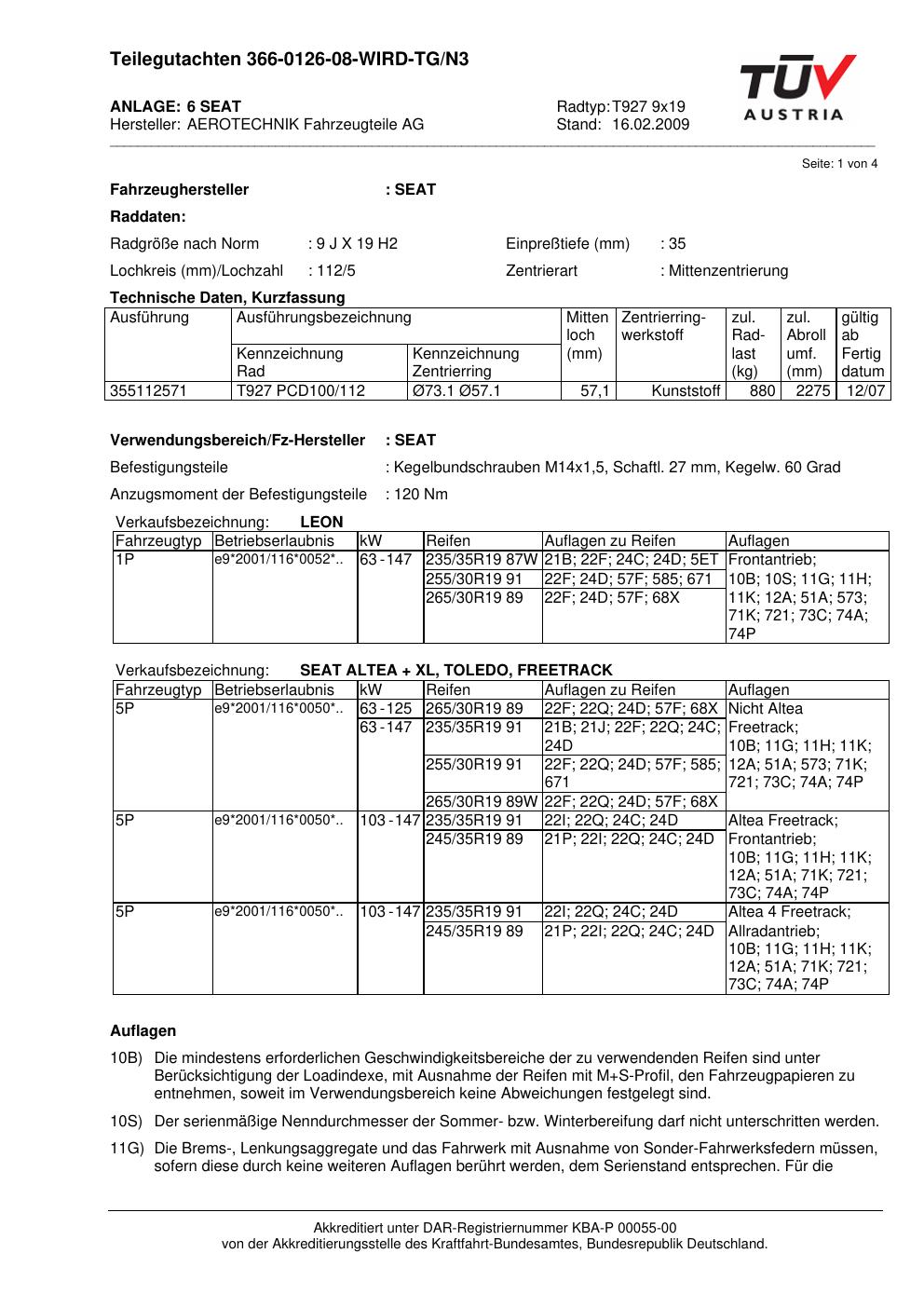 Dieses Gutachten (teilegutachten) bezieht sich auf die Alufelge ATS T927 9x19 in der Ausführung 9Jx19 ET 0, Mittenloch 0 mm . Im PDF findest du typischerweise zulässige Reifengrößen, Auflagen/Anbauhinweise und – je nach Dokument – Hinweise zur Eintragung.