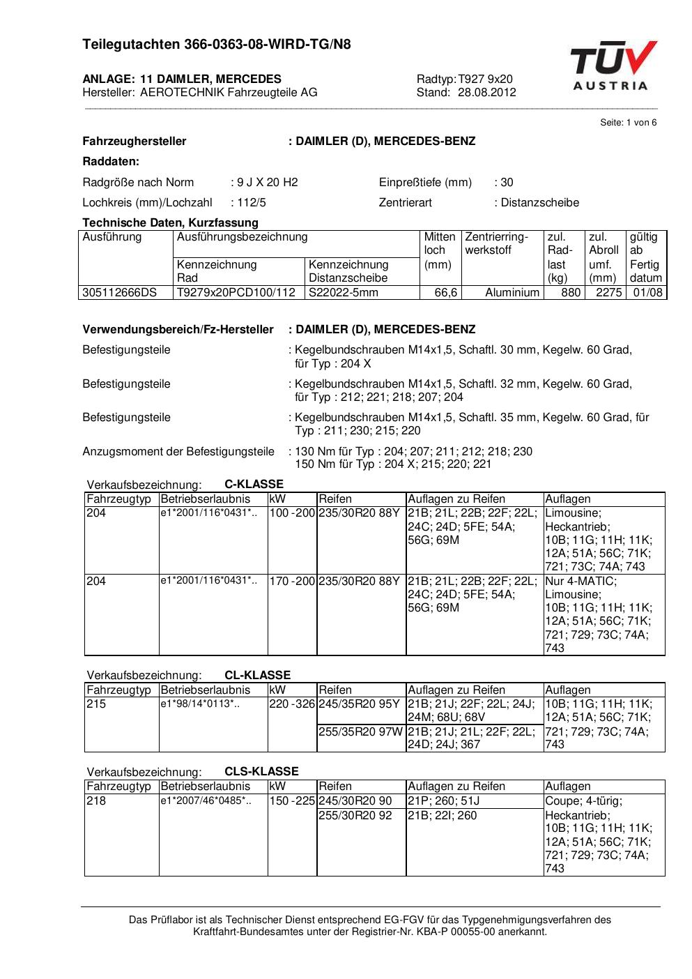 Dieses Gutachten (teilegutachten) bezieht sich auf die Alufelge ATS T927 9x20 in der Ausführung 9Jx2 ET 0, Mittenloch 0 mm . Im PDF findest du typischerweise zulässige Reifengrößen, Auflagen/Anbauhinweise und – je nach Dokument – Hinweise zur Eintragung.