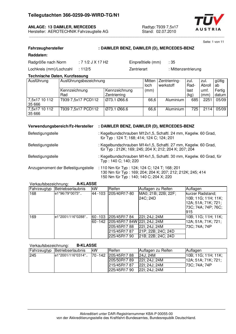 teilegutachten nicht ATS T939 7