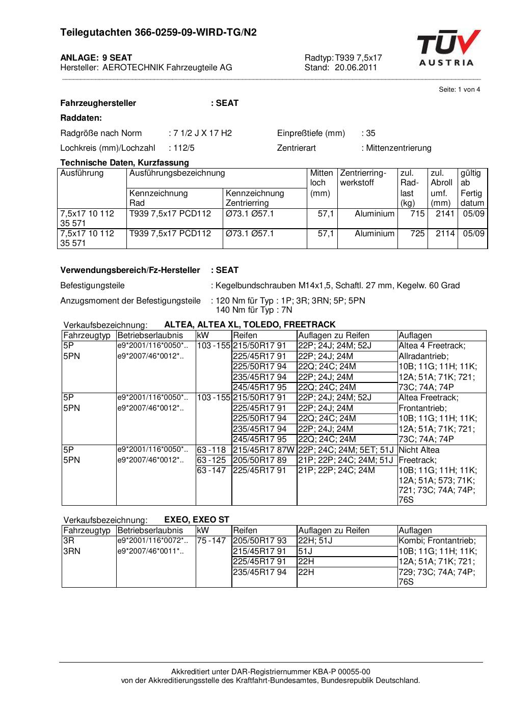 Dieses Gutachten (teilegutachten) bezieht sich auf die Alufelge ATS T939 7 in der Ausführung 7.5Jx17 ET 0, Mittenloch 0 mm . Im PDF findest du typischerweise zulässige Reifengrößen, Auflagen/Anbauhinweise und – je nach Dokument – Hinweise zur Eintragung.