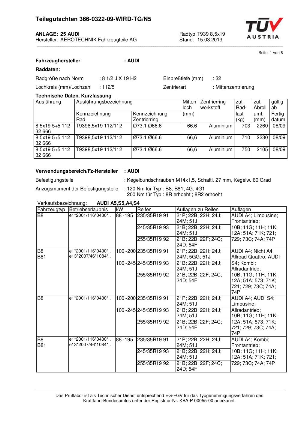 Felgengutachten / teilegutachten für Alufelgen ATS T939 8 (8.5Jx19 ET 0, Mittenloch 0 mm) (Zertifikatsnummer nicht). Hier kostenlos als PDF herunterladen. Der Download-Link ist 24 Stunden gültig und kann bis zu zwei Mal verwendet werden.