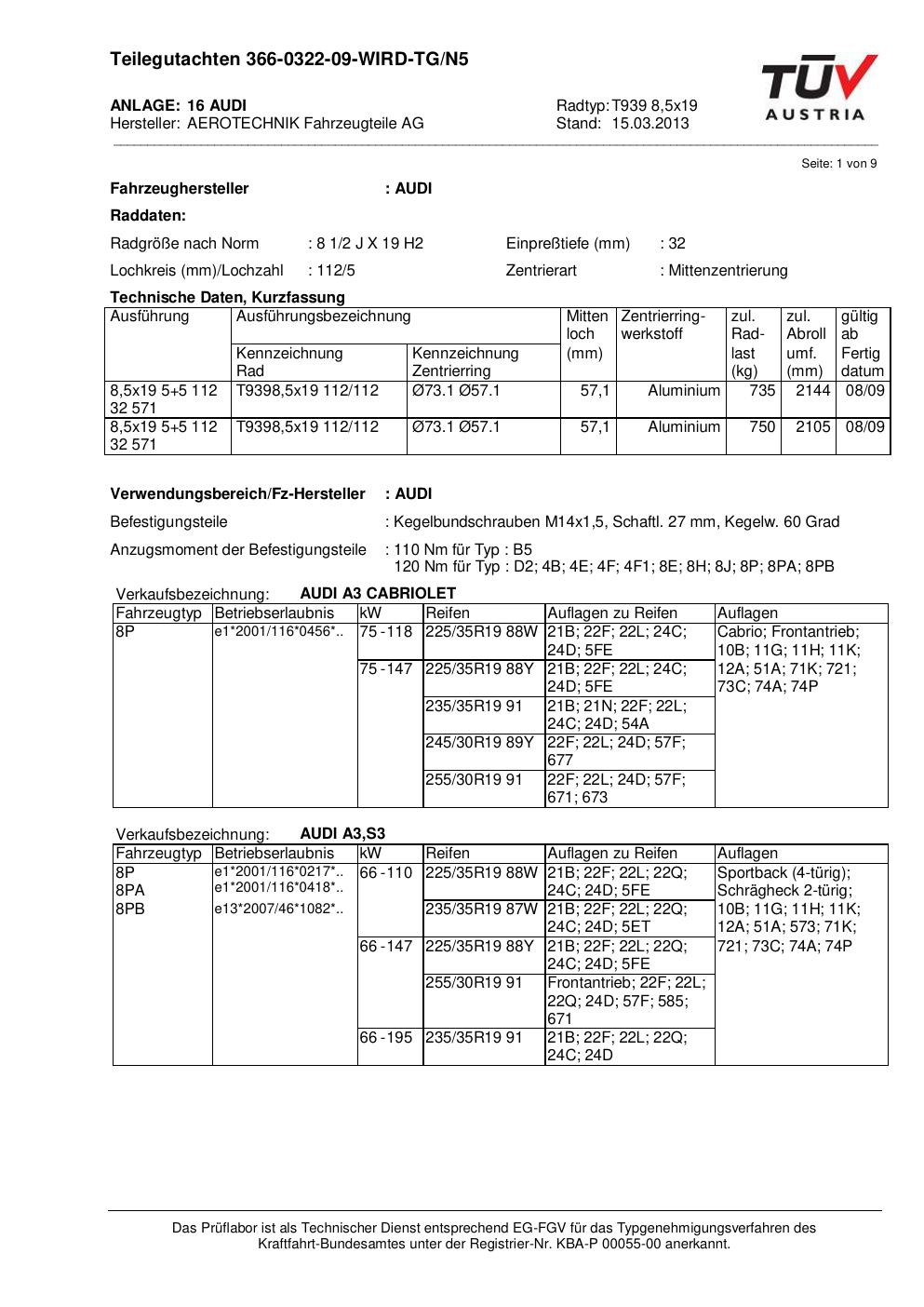 Felgengutachten / teilegutachten für Alufelgen ATS T939 8 (8.5Jx19 ET 0, Mittenloch 0 mm) (Zertifikatsnummer nicht). Hier kostenlos als PDF herunterladen. Der Download-Link ist 24 Stunden gültig und kann bis zu zwei Mal verwendet werden.