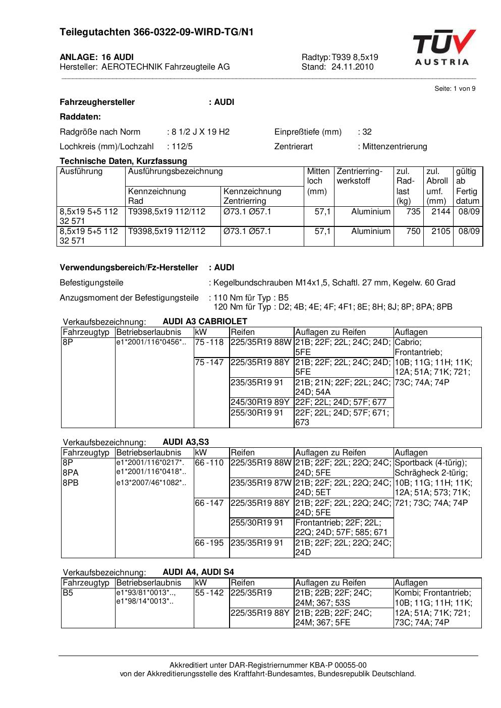 teilegutachten nicht ATS T939 8