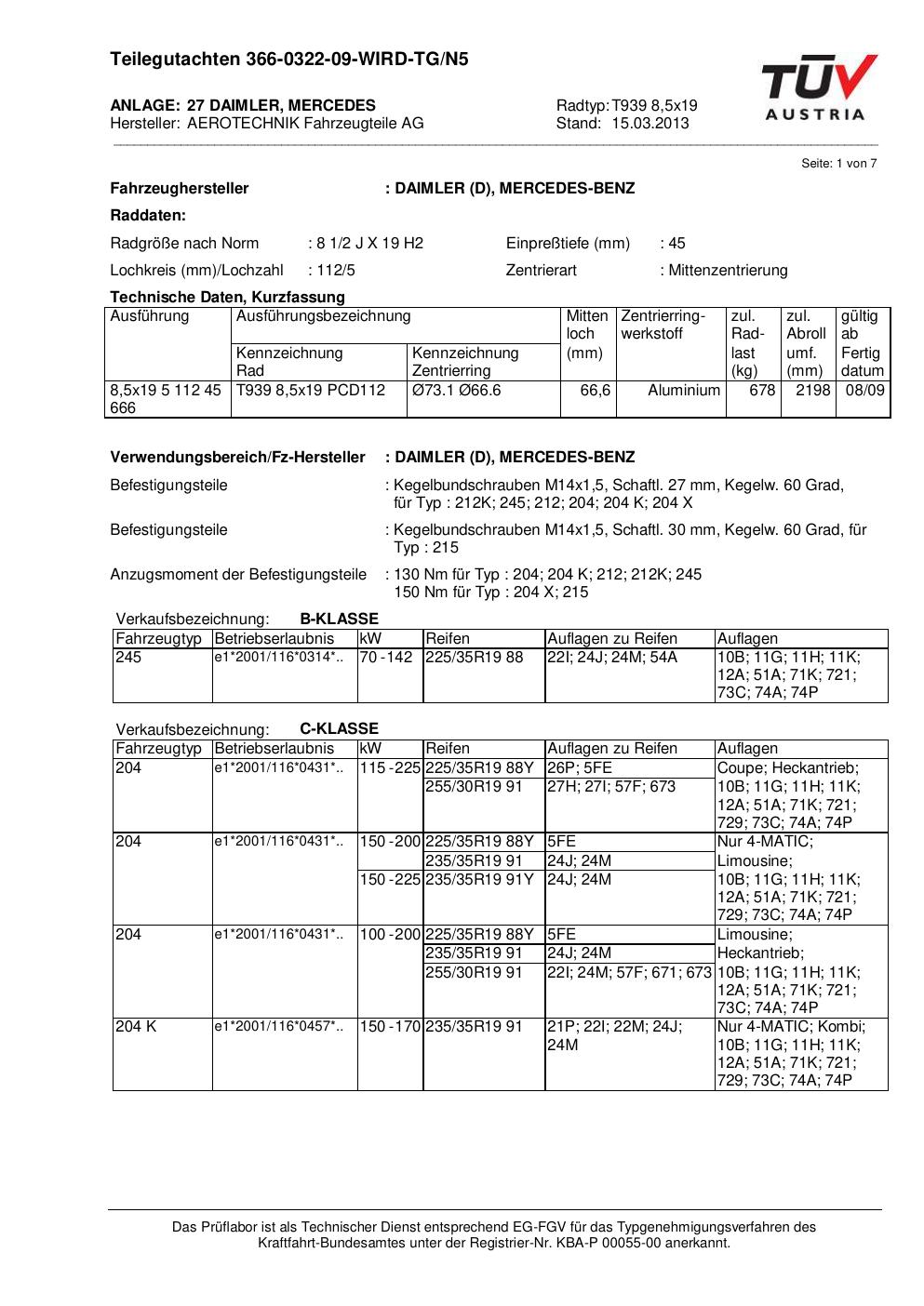 teilegutachten nicht ATS T939 8
