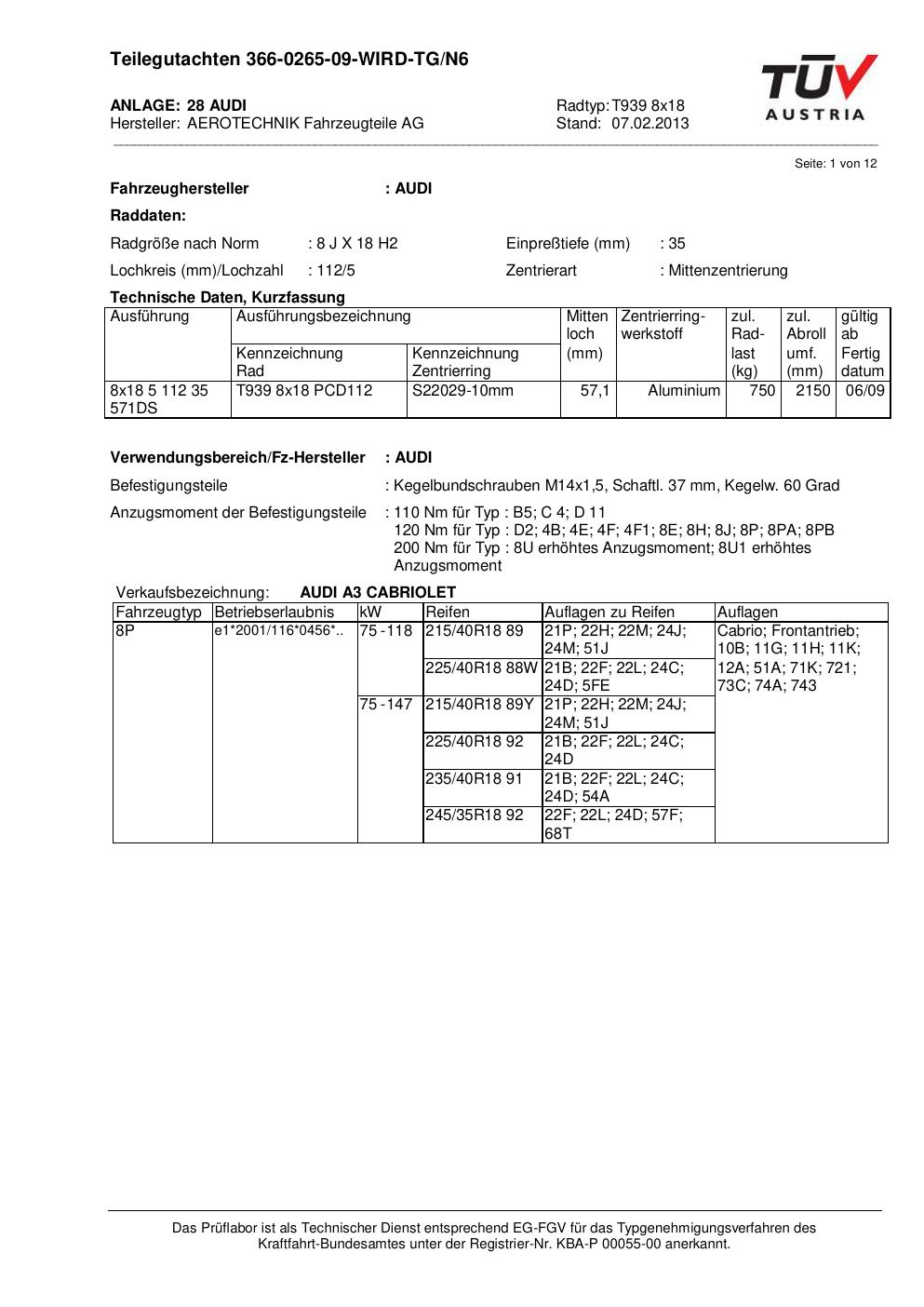 teilegutachten nicht ATS T939 8x18