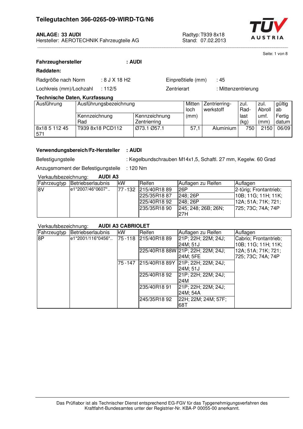 teilegutachten nicht ATS T939 8x18