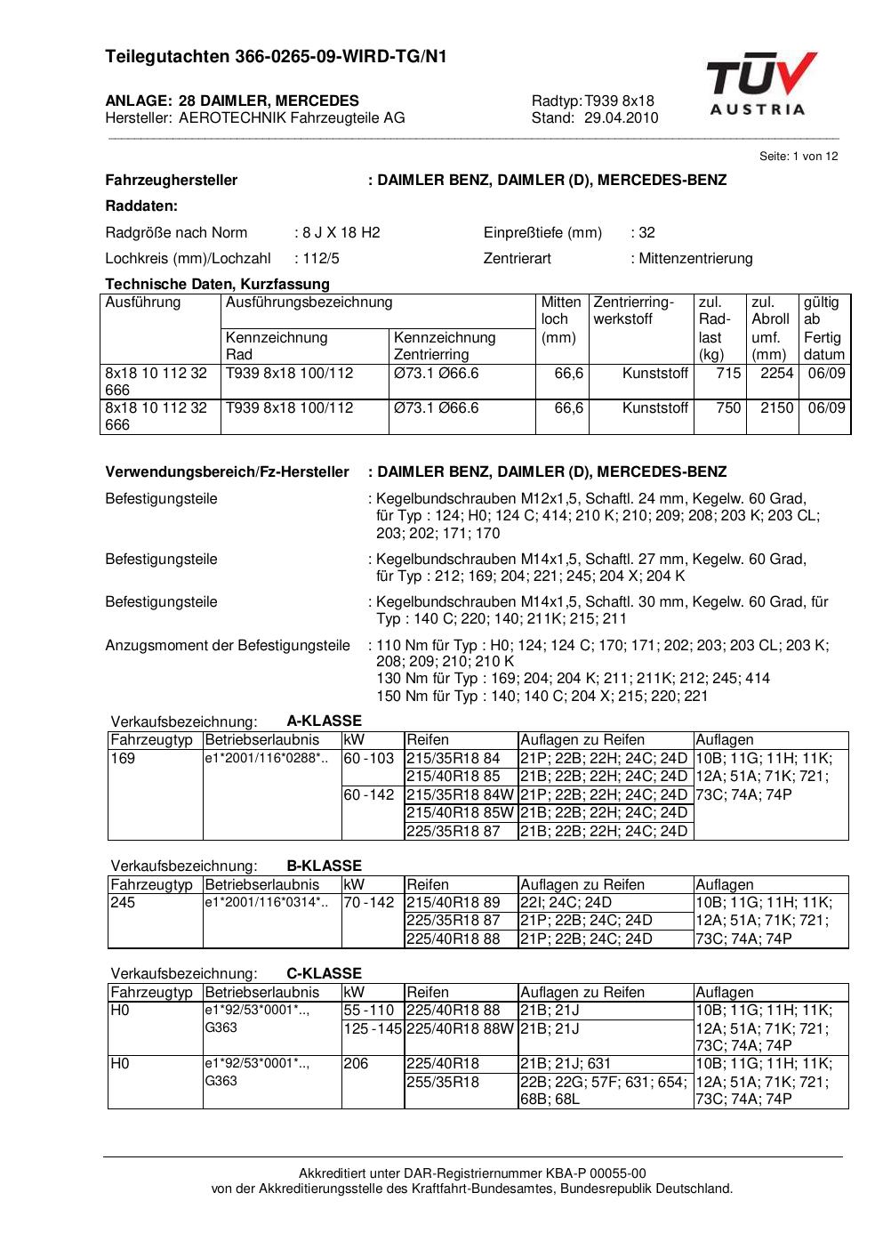 teilegutachten nicht ATS T939 8x18