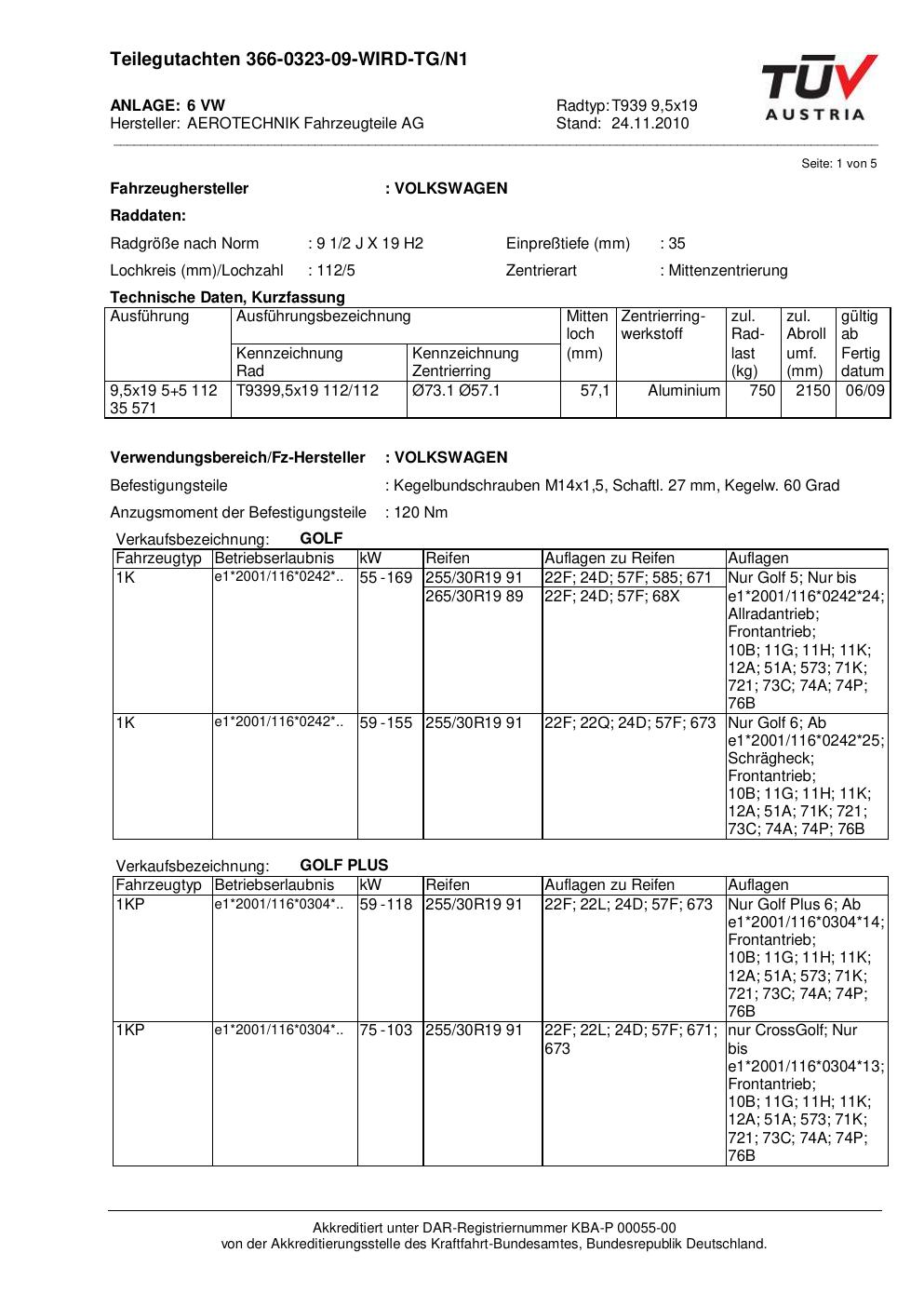 Dieses Gutachten (teilegutachten) bezieht sich auf die Alufelge ATS T939 9 in der Ausführung 9.5Jx19 ET 0, Mittenloch 0 mm . Im PDF findest du typischerweise zulässige Reifengrößen, Auflagen/Anbauhinweise und – je nach Dokument – Hinweise zur Eintragung.