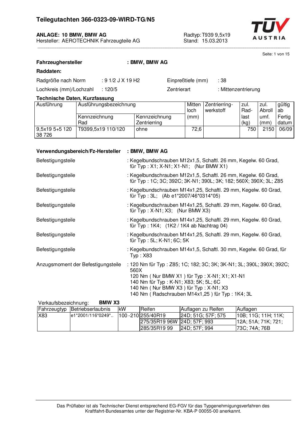 teilegutachten nicht ATS T939 9