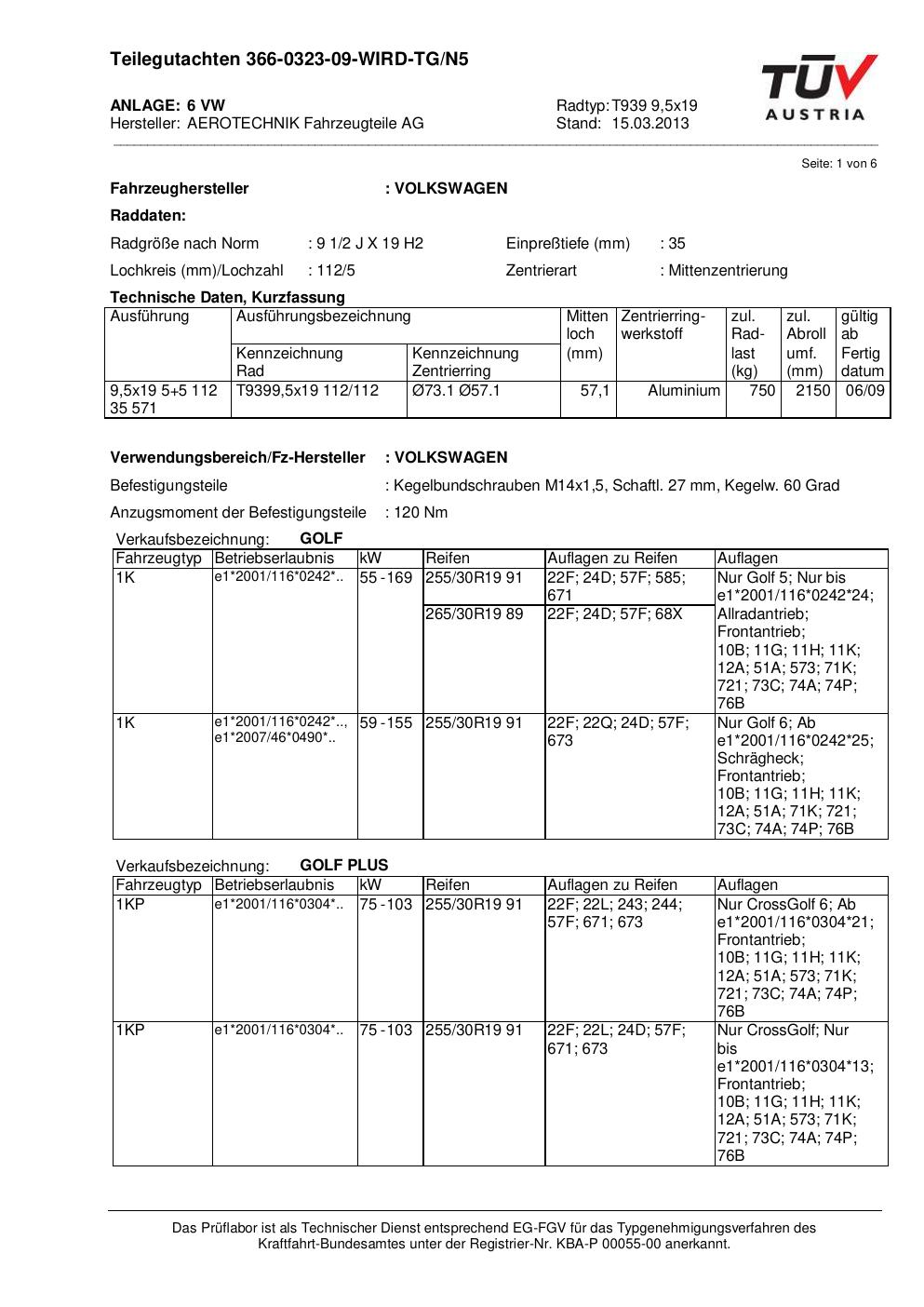 Dieses Gutachten (teilegutachten) bezieht sich auf die Alufelge ATS T939 9 in der Ausführung 9.5Jx19 ET 0, Mittenloch 0 mm . Im PDF findest du typischerweise zulässige Reifengrößen, Auflagen/Anbauhinweise und – je nach Dokument – Hinweise zur Eintragung.