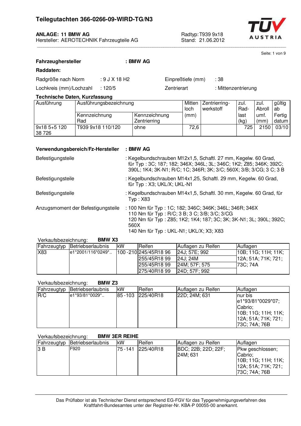 teilegutachten nicht ATS T939 9x18