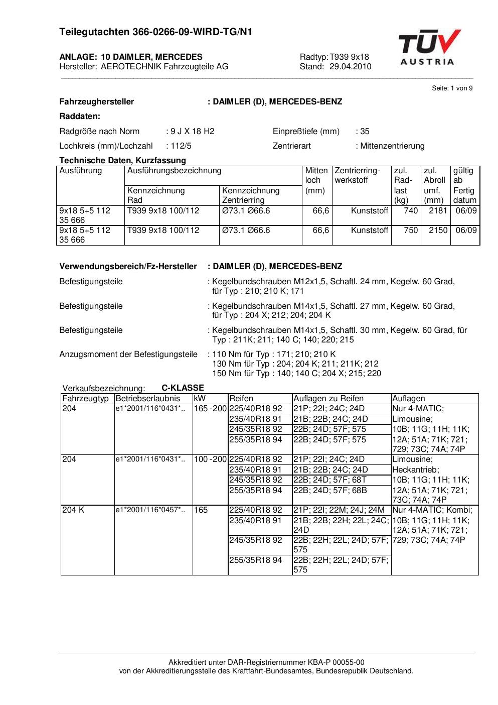 teilegutachten nicht ATS T939 9x18
