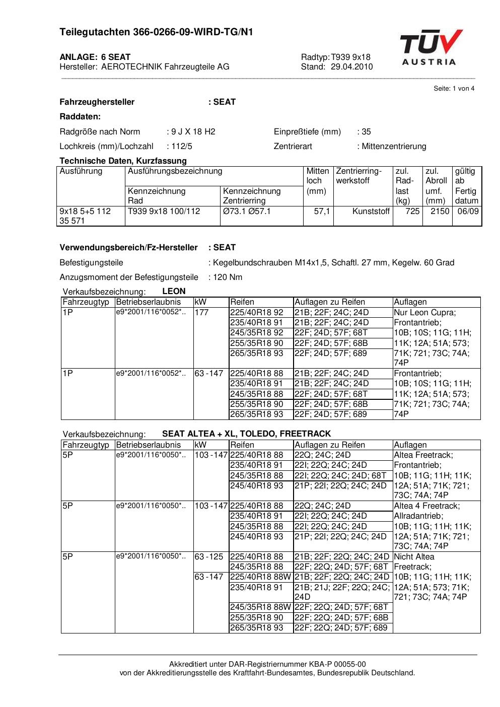 teilegutachten nicht ATS T939 9x18