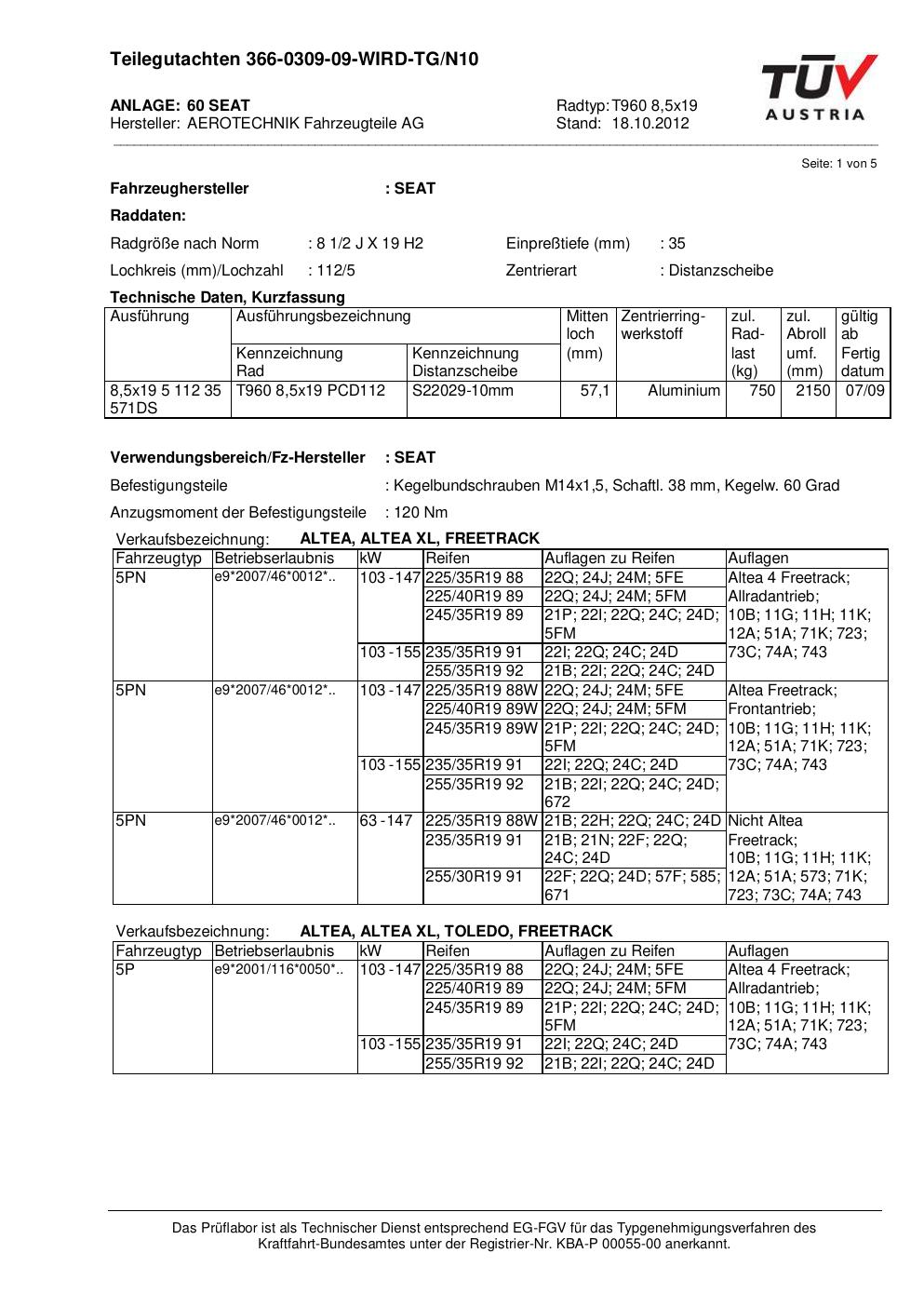 teilegutachten nicht ATS T960 8
