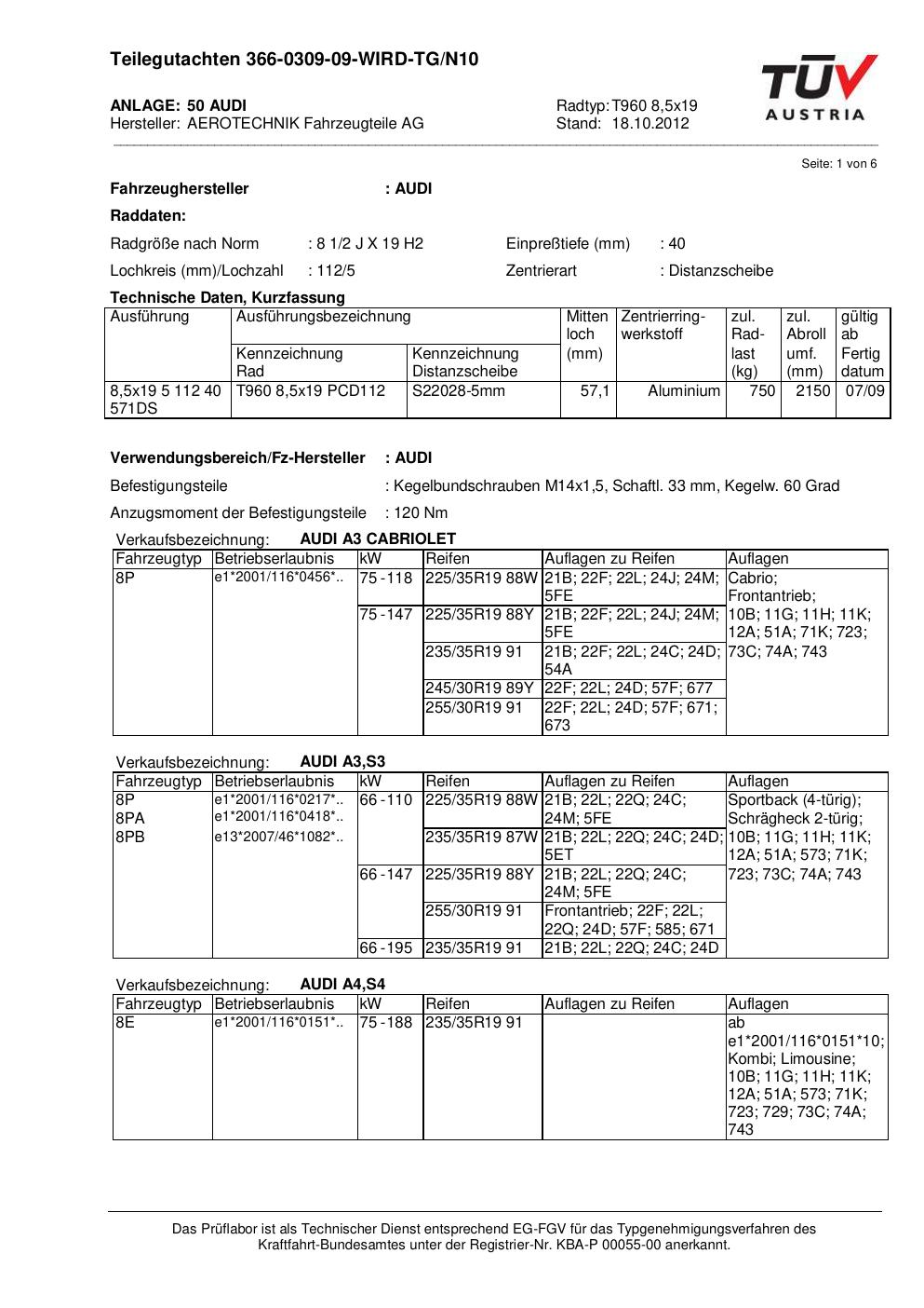 Dieses Gutachten (teilegutachten) bezieht sich auf die Alufelge ATS T960 8 in der Ausführung 8.5Jx19 ET 0, Mittenloch 0 mm . Im PDF findest du typischerweise zulässige Reifengrößen, Auflagen/Anbauhinweise und – je nach Dokument – Hinweise zur Eintragung.