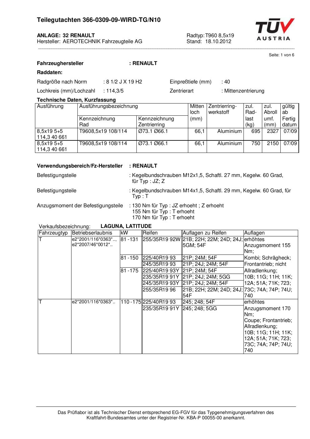 teilegutachten nicht ATS T960 8
