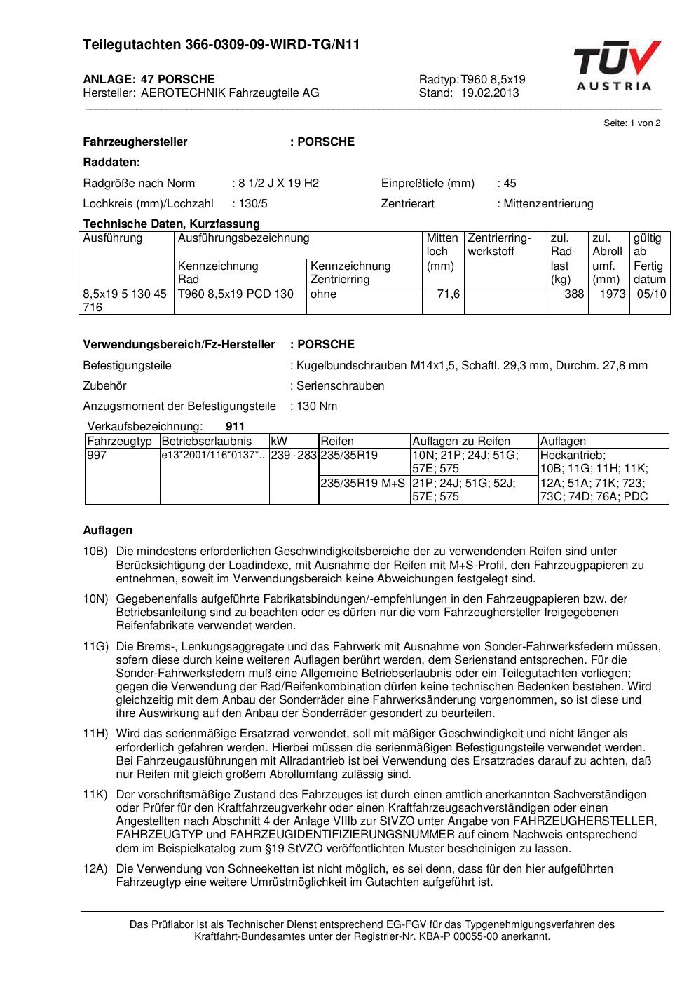 teilegutachten nicht ATS T960 8