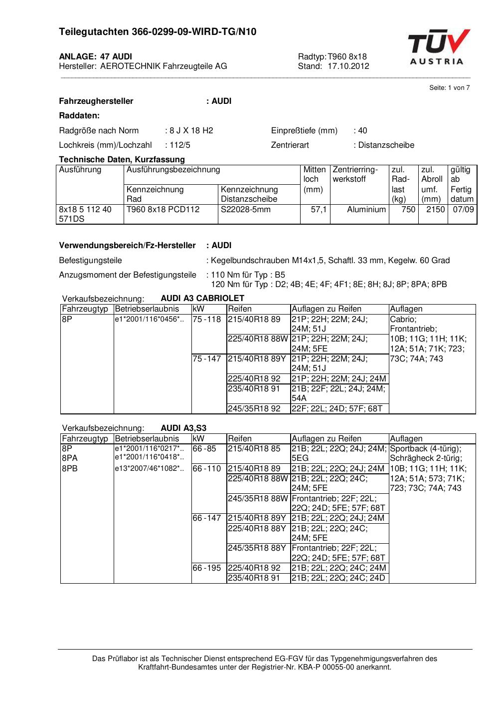 teilegutachten nicht ATS T960 8x18