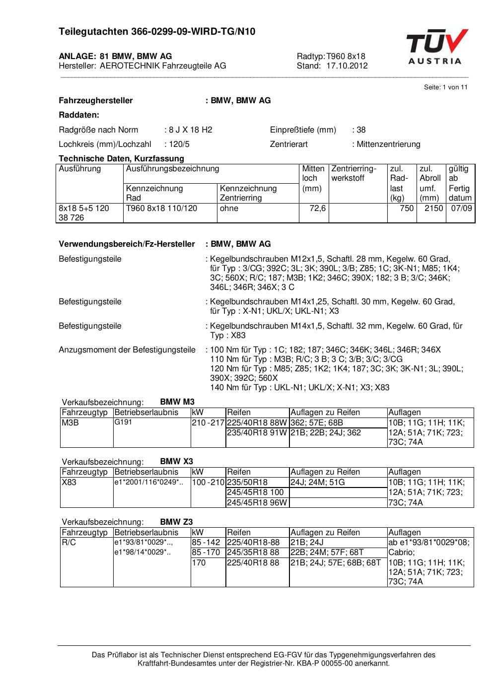 teilegutachten nicht ATS T960 8x18