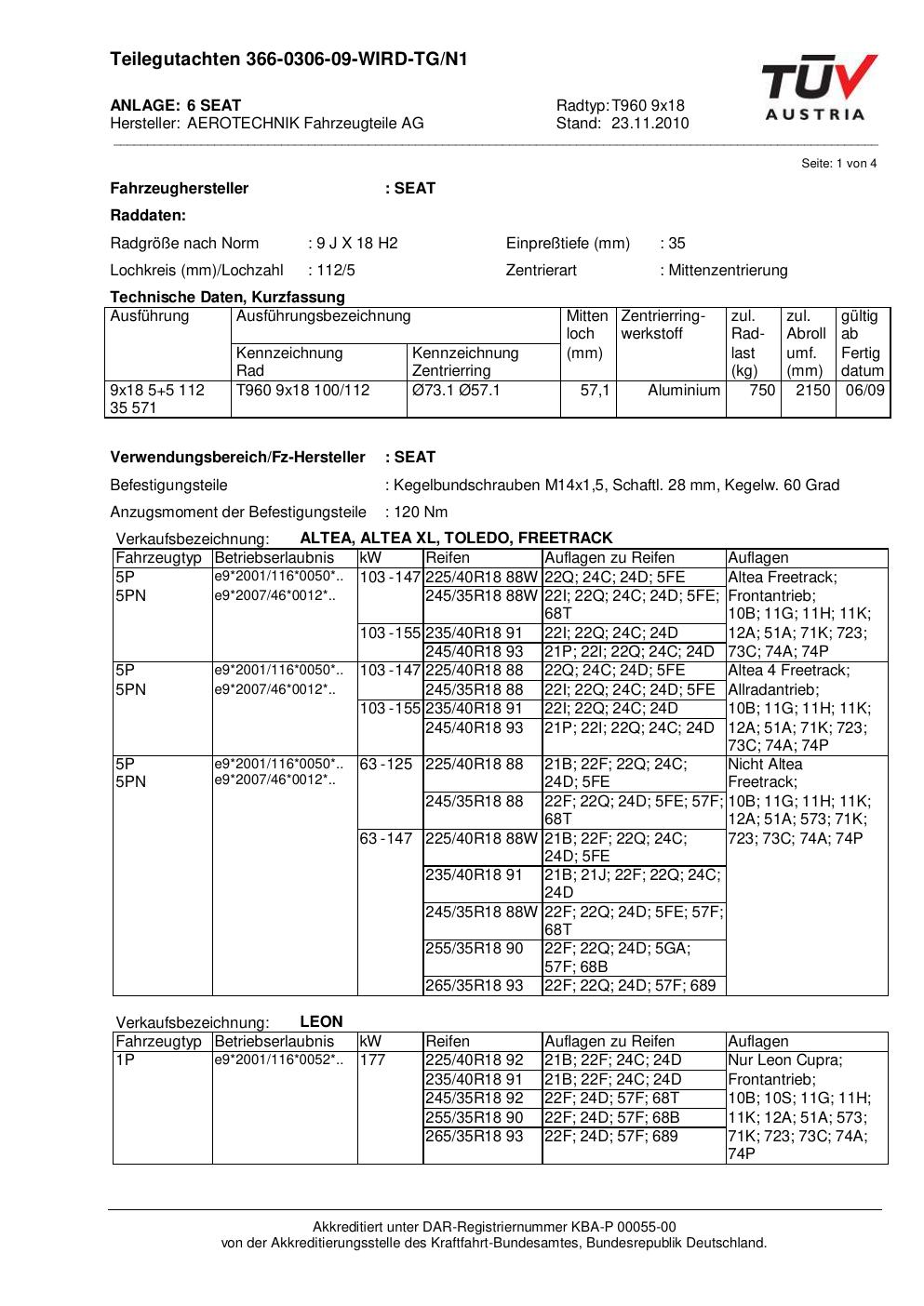 teilegutachten nicht ATS T960 9x18