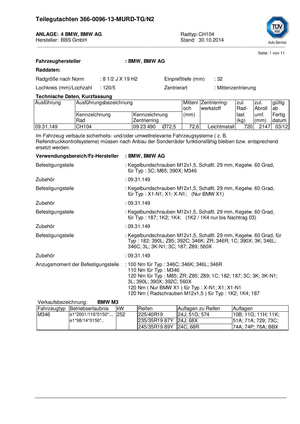 teilegutachten nicht BBS CH104