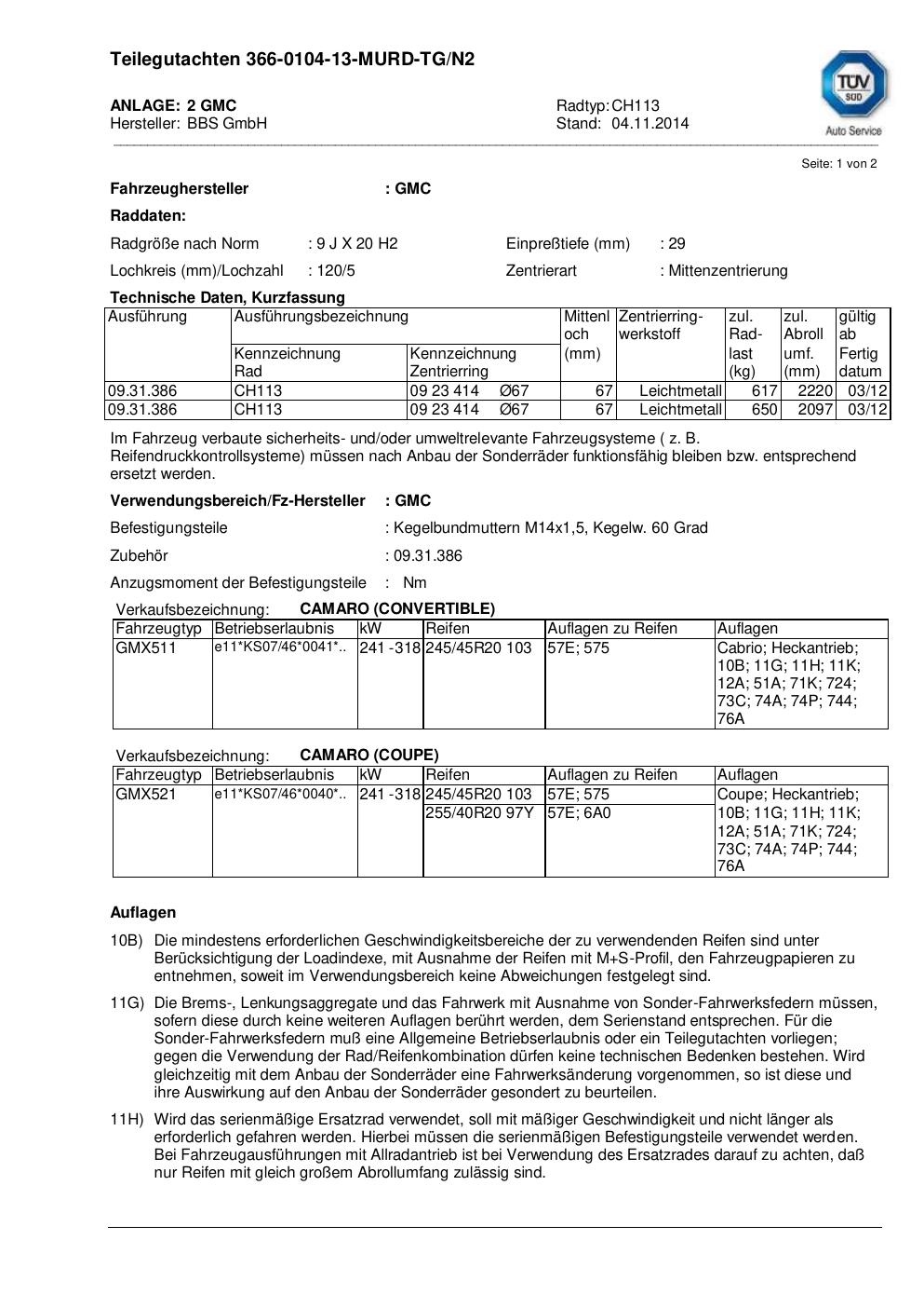 teilegutachten nicht BBS CH113