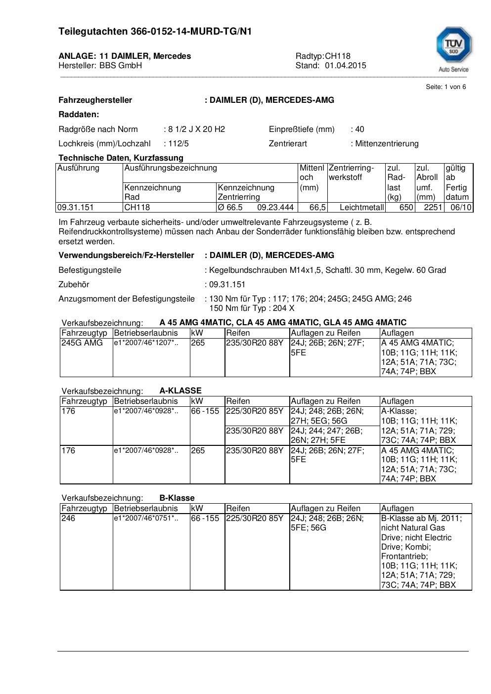 teilegutachten nicht BBS CH118