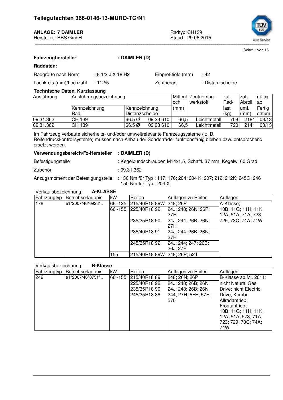 teilegutachten nicht BBS CH139