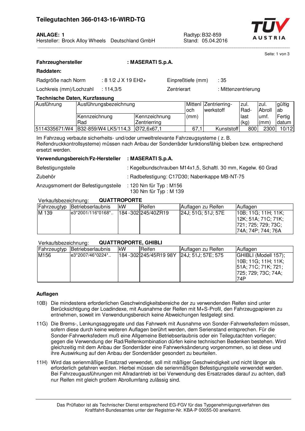 Felgengutachten / teilegutachten für Alufelgen Brock B32-859 (2Jx19 ET 0, Mittenloch 0 mm) (Zertifikatsnummer nicht). Hier kostenlos als PDF herunterladen. Der Download-Link ist 24 Stunden gültig und kann bis zu zwei Mal verwendet werden.