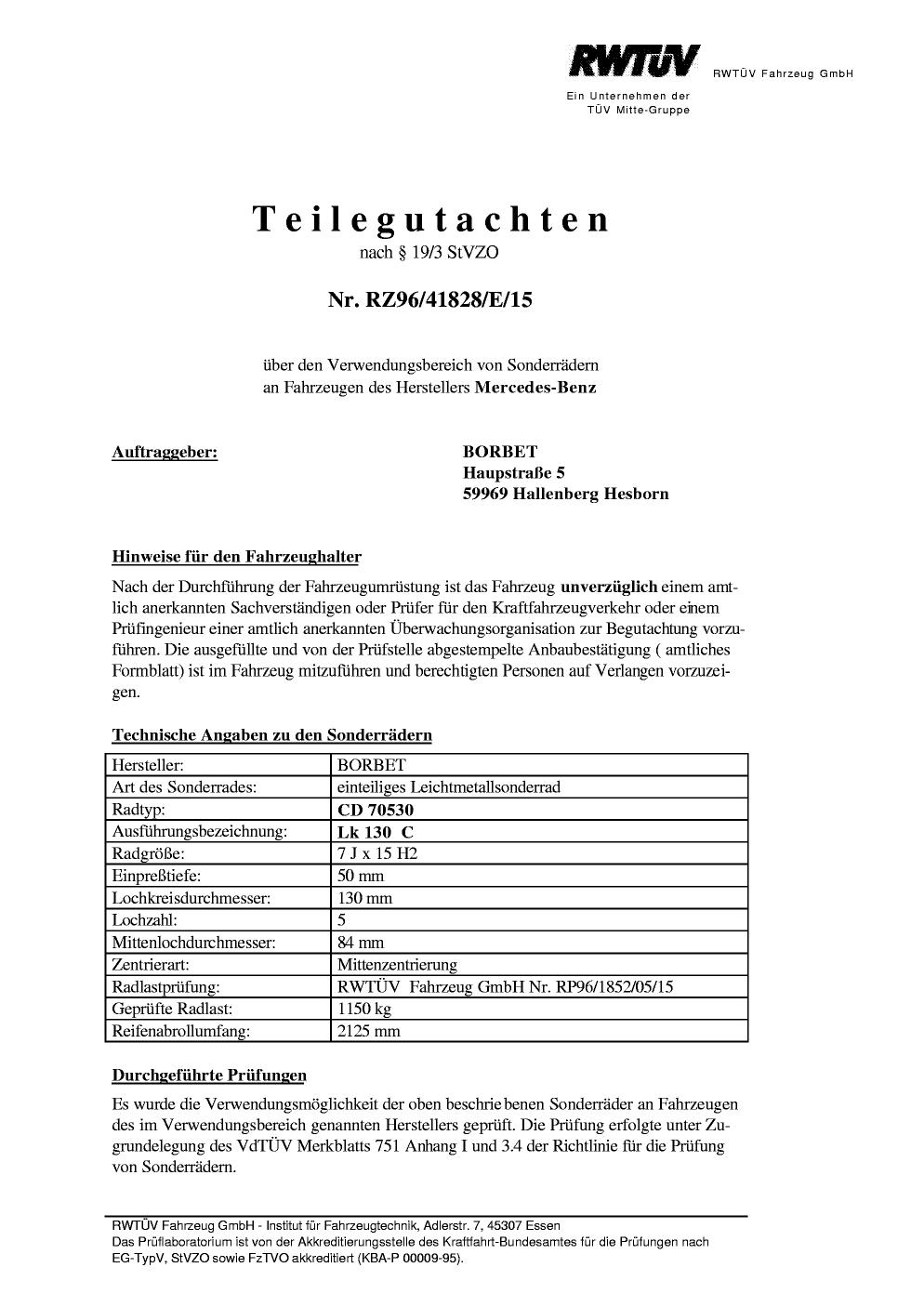Felgengutachten / teilegutachten für Alufelgen ATS 214 (5Jx33 ET 0, Mittenloch 0 mm) (Zertifikatsnummer rz96/41828/e/15). Hier kostenlos als PDF herunterladen. Der Download-Link ist 24 Stunden gültig und kann bis zu zwei Mal verwendet werden.