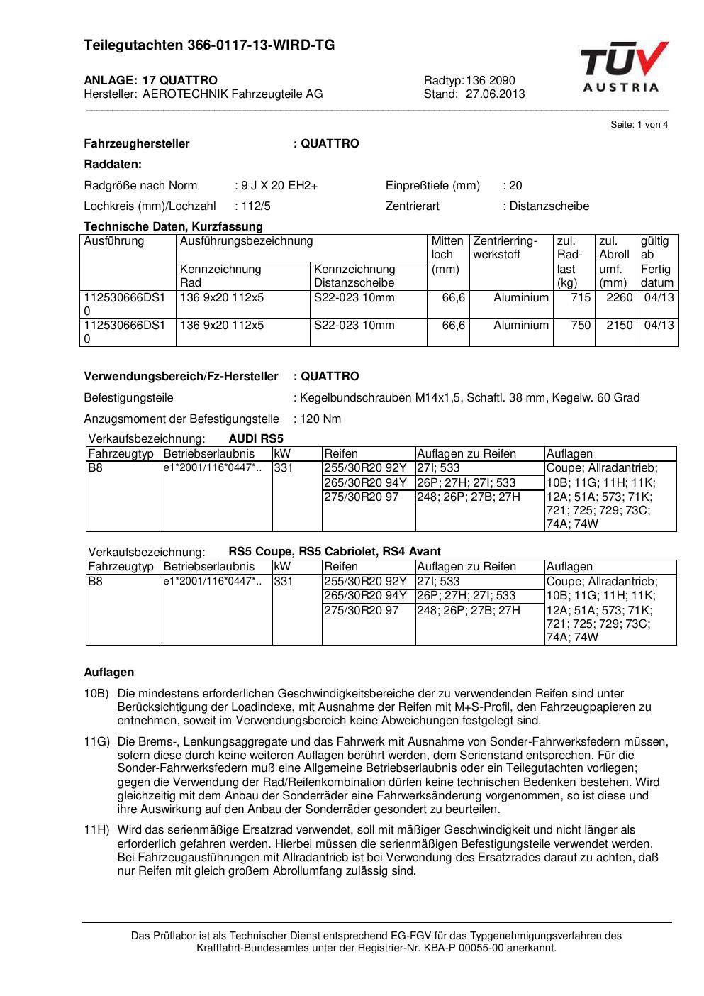 Felgengutachten / teilegutachten für Alufelgen ATS 136 2090 (9Jx2 ET 0, Mittenloch 0 mm) (Zertifikatsnummer unter). Hier kostenlos als PDF herunterladen. Der Download-Link ist 24 Stunden gültig und kann bis zu zwei Mal verwendet werden.