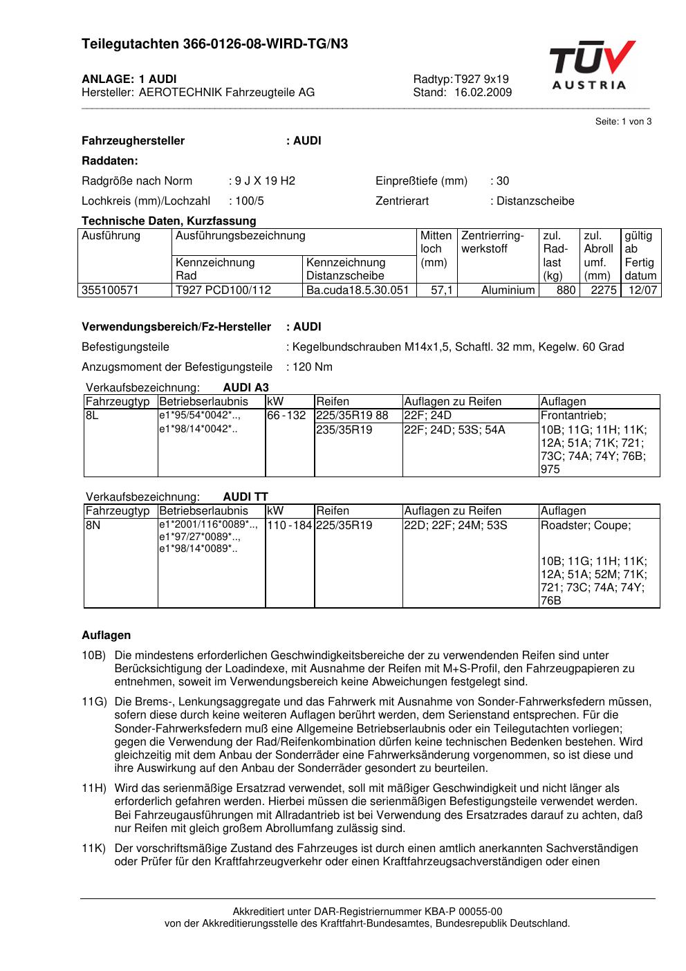 Dieses Gutachten (teilegutachten) bezieht sich auf die Alufelge ATS T927 9x19 in der Ausführung 9Jx19 ET 0, Mittenloch 0 mm . Im PDF findest du typischerweise zulässige Reifengrößen, Auflagen/Anbauhinweise und – je nach Dokument – Hinweise zur Eintragung.