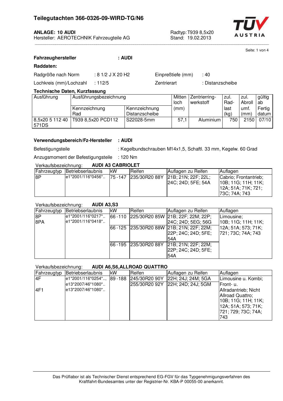 teilegutachten unter ATS T939 8