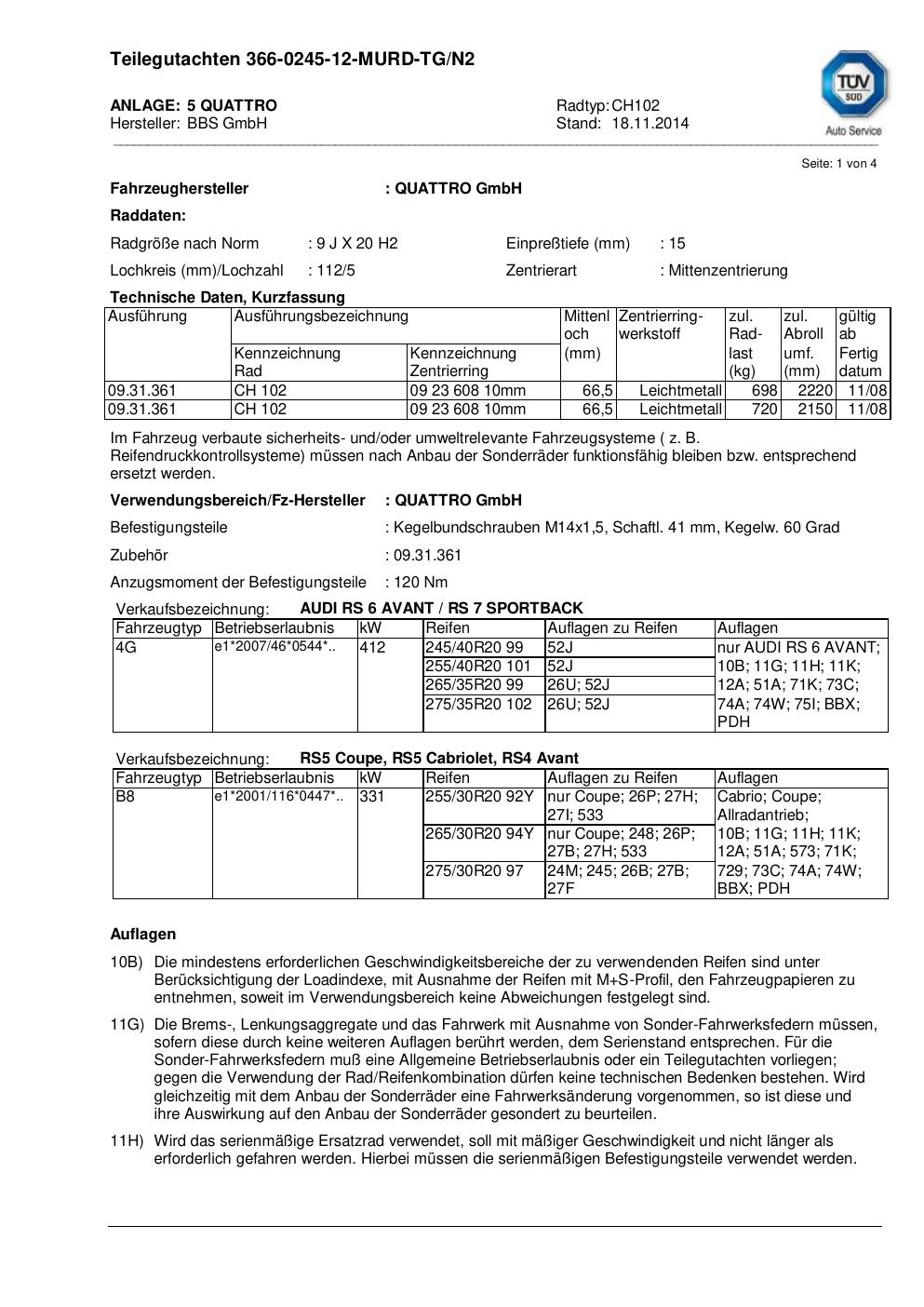 teilegutachten unter BBS CH102