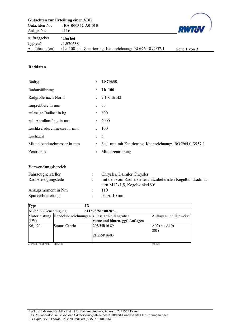 teilegutachten zur Borbet LS70638
