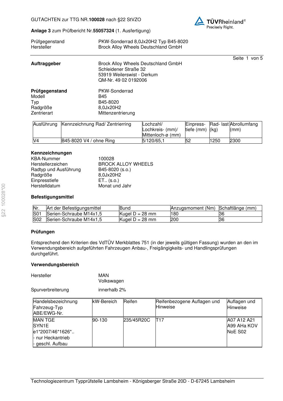 Felgengutachten / teilegutachten für Alufelgen Brock B45-8020 (8Jx2 ET 0, Mittenloch 0 mm) (Zertifikatsnummer zur). Hier kostenlos als PDF herunterladen. Der Download-Link ist 24 Stunden gültig und kann bis zu zwei Mal verwendet werden.