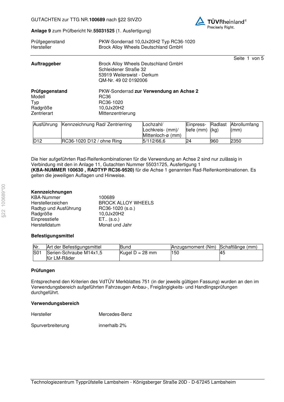 teilegutachten zur Brock RC36-10 20