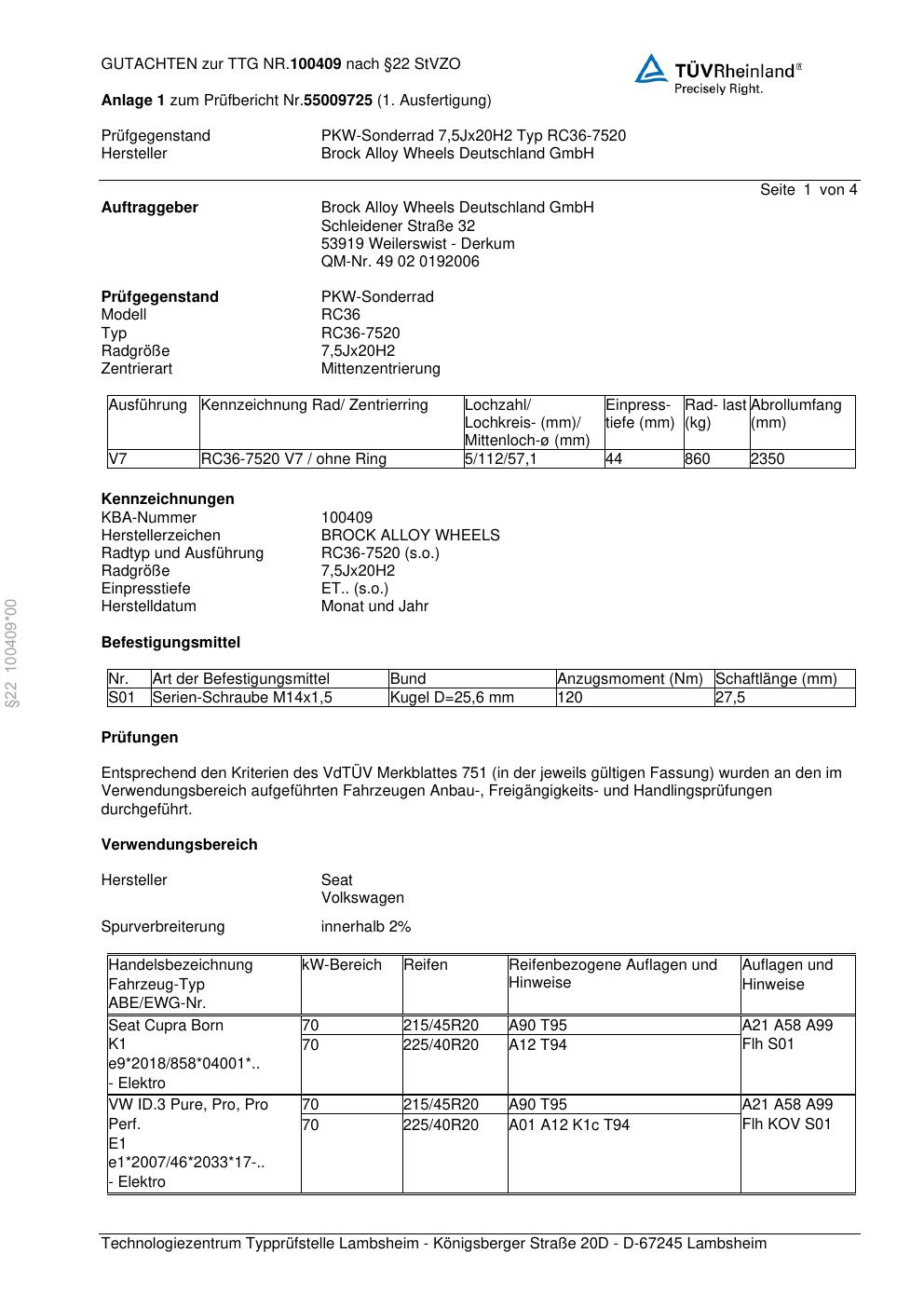teilegutachten zur Brock RC36-752 0