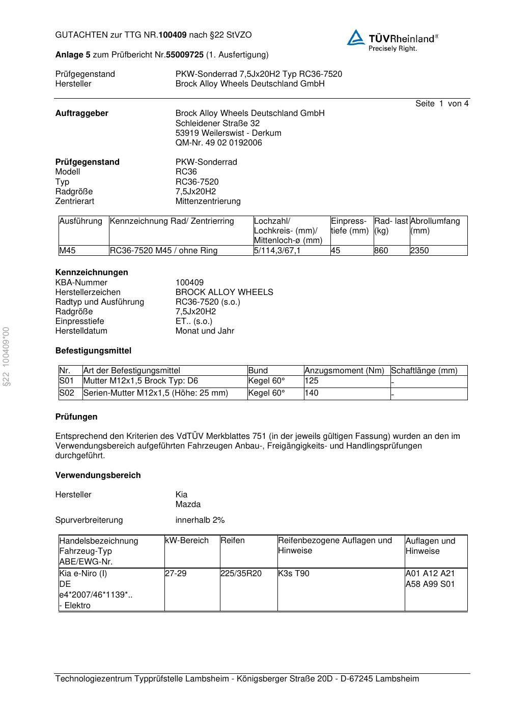 teilegutachten zur Brock RC36-752 0