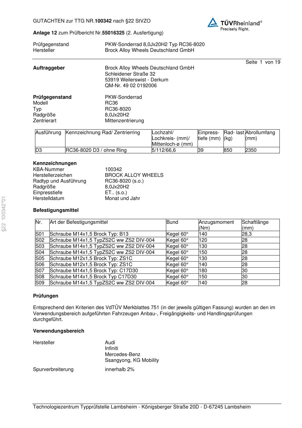 teilegutachten zur Brock RC36-802 0