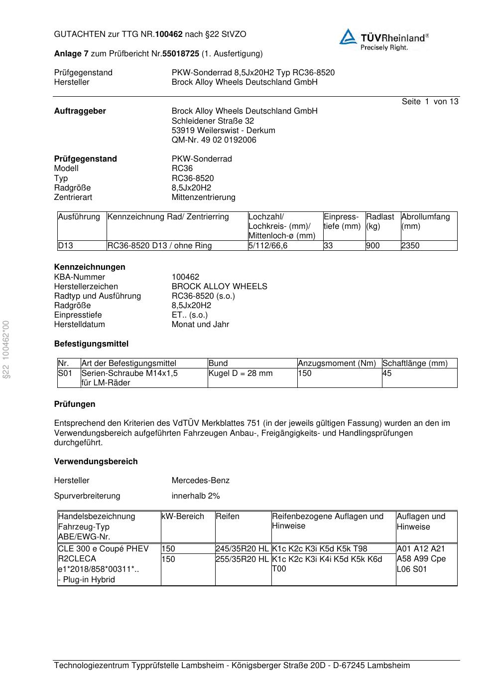 Felgengutachten / teilegutachten für Alufelgen Brock RC36-8520 (8.5Jx2 ET 0, Mittenloch 0 mm) (Zertifikatsnummer zur). Hier kostenlos als PDF herunterladen. Der Download-Link ist 24 Stunden gültig und kann bis zu zwei Mal verwendet werden.