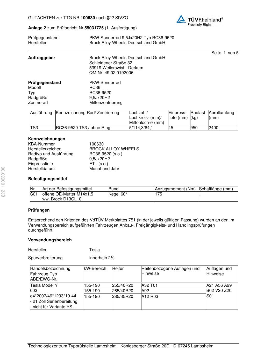 teilegutachten zur Brock RC36-9520
