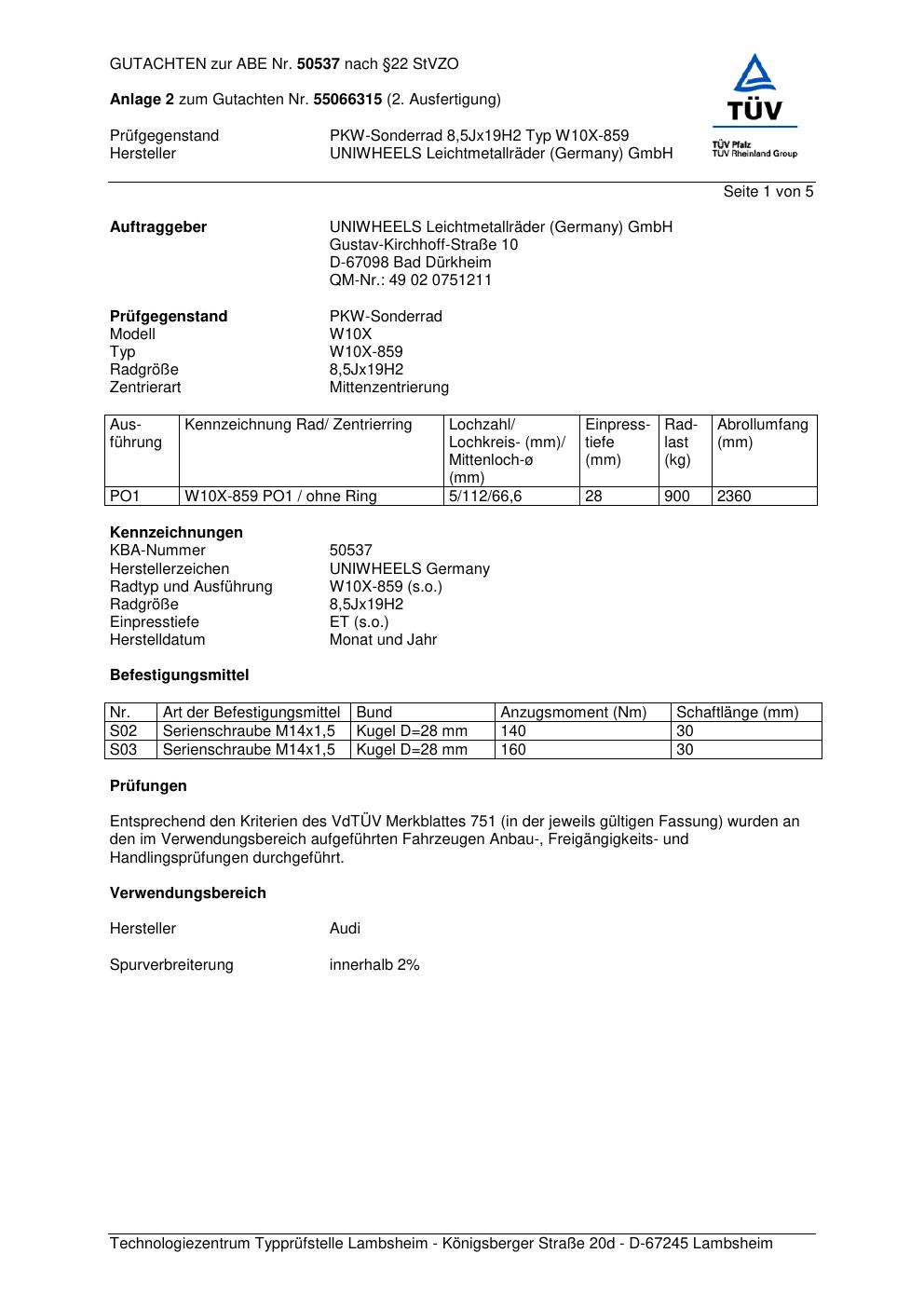 Dieses abe gehört zur Felge UNIWHEELS W10X-859 in ET0 mit KBA 50537. Die Seite ist dafür gedacht, dass du schnell prüfen kannst, ob KBA, Design und Größe zu deiner Felge passen und danach direkt das richtige PDF lädst.