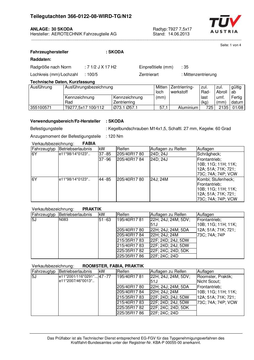 teilegutachten 366-0122-08-wird-tg-n12 unknown T927 7,5x17