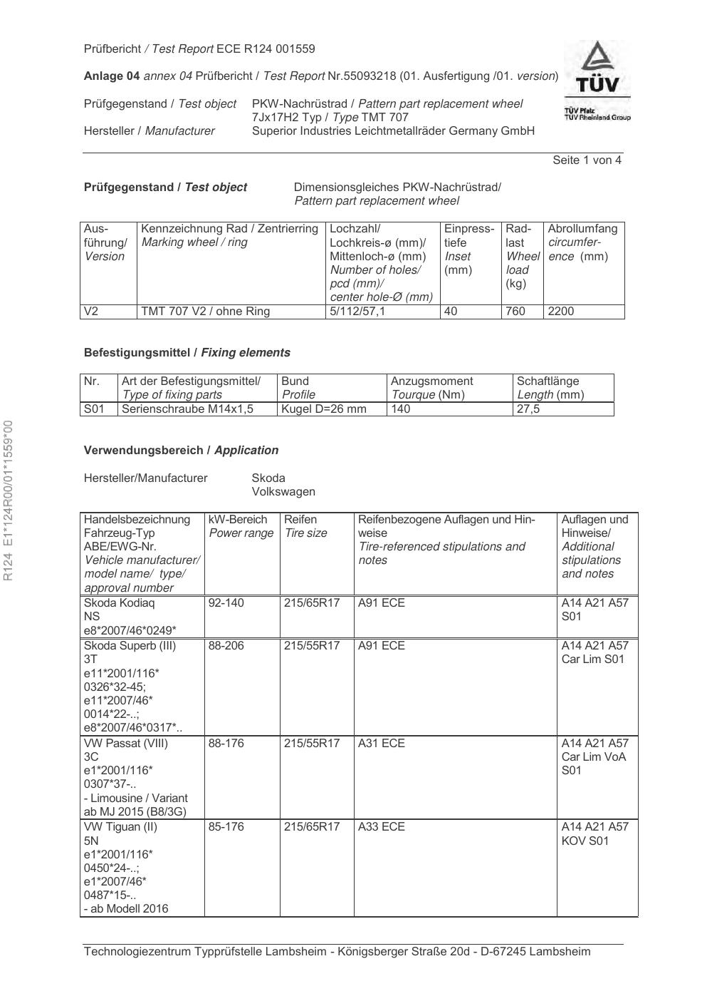 Felgengutachten / ece für Alufelgen unknown TMT 707 (ET 0, Mittenloch 0 mm) (Zertifikatsnummer e1-124r00-01-1559-00). Hier kostenlos als PDF herunterladen. Der Download-Link ist 24 Stunden gültig und kann bis zu zwei Mal verwendet werden.
