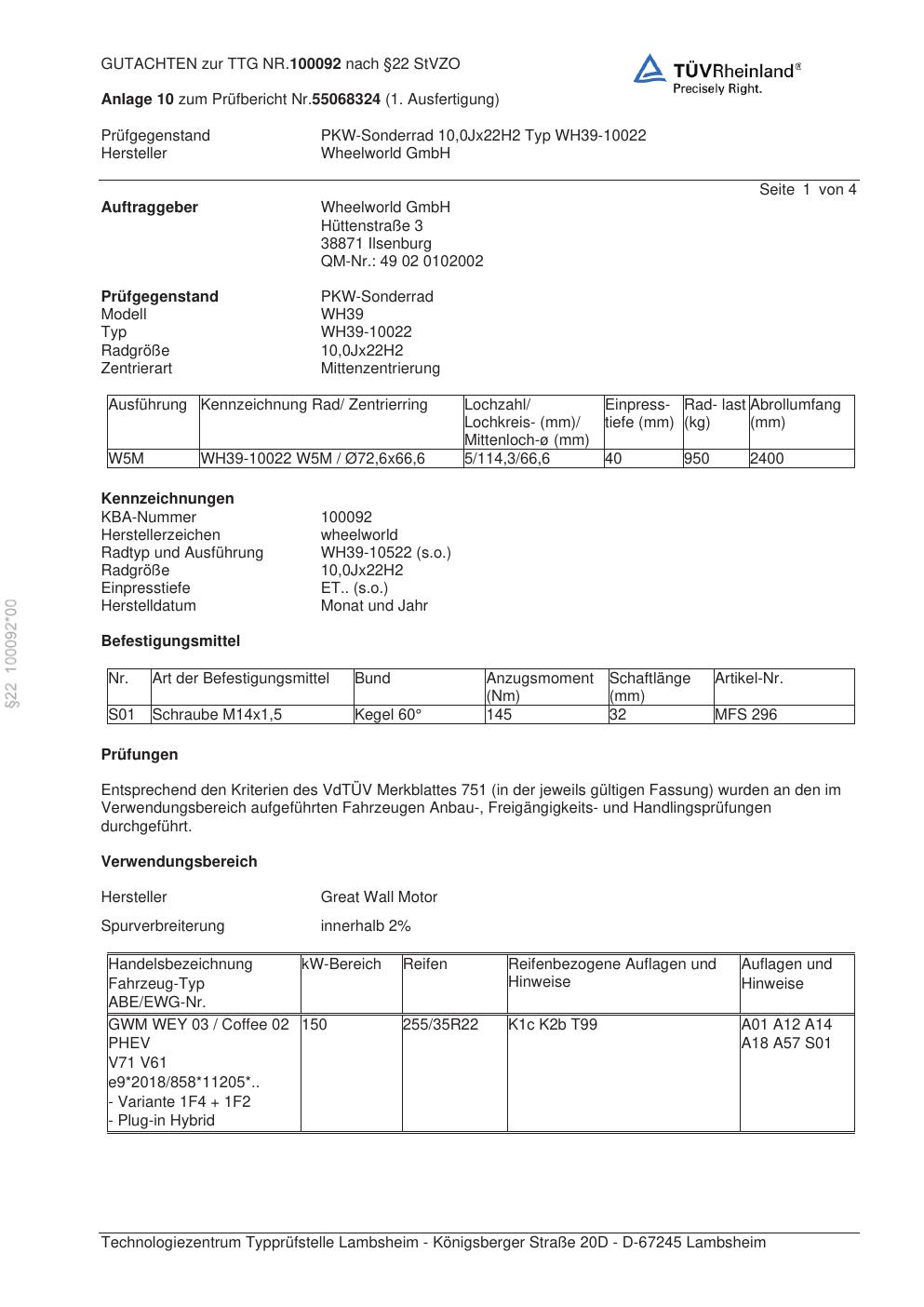 teilegutachten 100092 Wheelworld WH39-10022