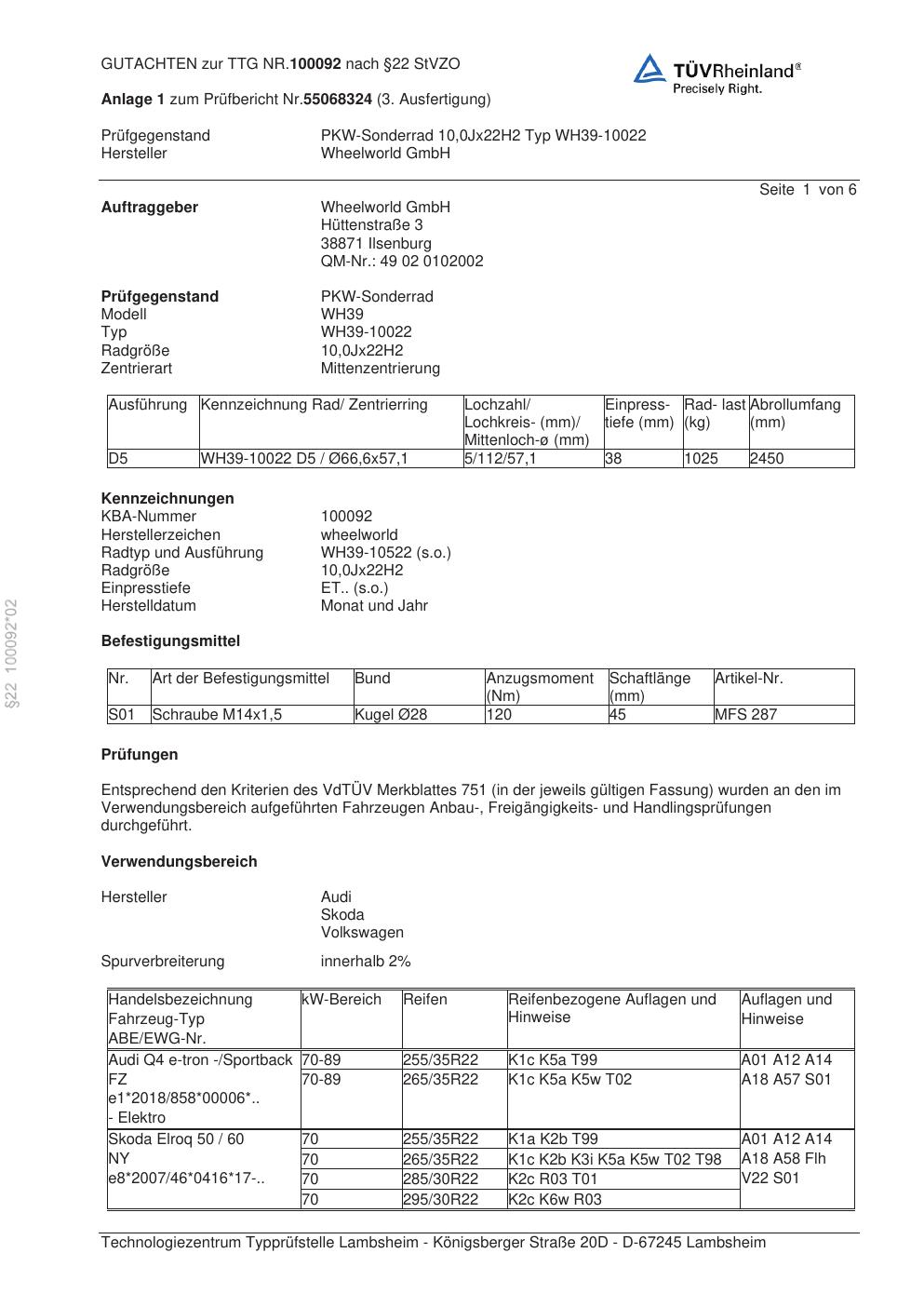 teilegutachten 100092 Wheelworld WH39-10022