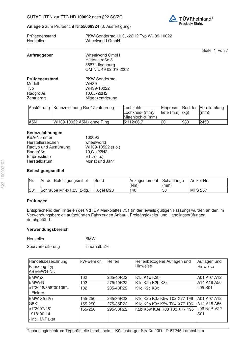 teilegutachten 100092 Wheelworld WH39-10022