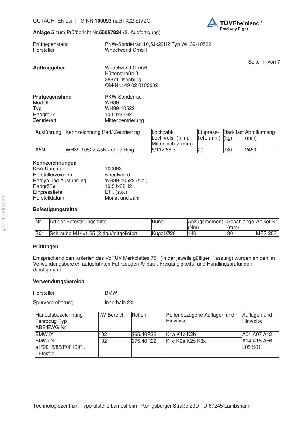 teilegutachten 100093 Wheelworld WH39-10522
