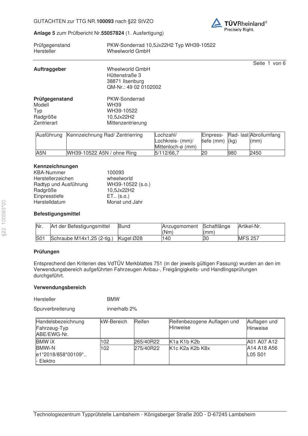 Felgengutachten / teilegutachten für Alufelgen Wheelworld WH39-10522 (ET 0, Mittenloch 0 mm) (Zertifikatsnummer 100093). Hier kostenlos als PDF herunterladen. Der Download-Link ist 24 Stunden gültig und kann bis zu zwei Mal verwendet werden.